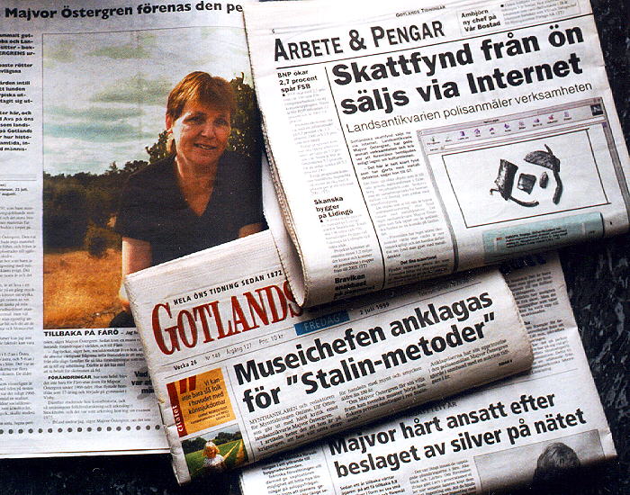 Stora rubriker har det blivit i gotlandstidningarna ända sedan Majvor Östergren satte igång sin fula kampanj mot oss och landets samlare. Att hennes påhopp skulle få mothugg hade hon kanske inte riktigt väntat sig och "kaxigheten" har avmattats betydligt med tiden. Nu senast skrev Gotlands Allehanda: "Majvor hårt ansatt efter beslaget av silver på nätet".