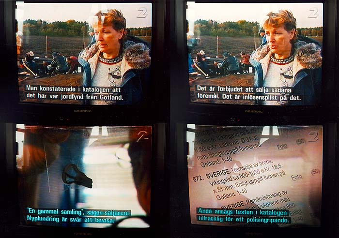 Inlämnarens utsaga: "enligt uppgift funnen på Gotland" - är för museichefen Majvor Östergren ett "konstaterande" av att så är fallet och hon polisanmäler saken. När konkurrenten i Stockholm (där arkeologkompisen Kenneth Jonsson jobbat) skriver "troligen funna på Gotland" har Östergren däremot INTE några synpunkter. En polisanmälan är då INTE aktuell. Varför? I SVT:s program Striptease står museichefen och ljuger hela svenka folket rakt i ansiktet när hon påstår att det är "enligt lag förbjudet att sälja den här typen av föremål" (syftande på beslaget). Östergren menar alltså att det är olagligt att sälja arabiska silvermynt - men däremot fullt lagligt (för en del?) att sälja gotländska guldbrakteatrar...? Man kan då fråga sig varför hon inte anmäler även auktionsfirman i Stockholm? Där säljs nämligen drygt 95% av alla "vikingamynt" som omsätts i Sverige. Bara under 1990-talet har stockholmsfirman sålt över 1.500 dylika ("olaglig") mynt.