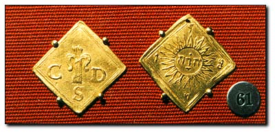 Karl IX, 8 mark guldklipping 1587. Kopierad efter Brenners illustration av 8 mark 1589. KMK:s utställning.